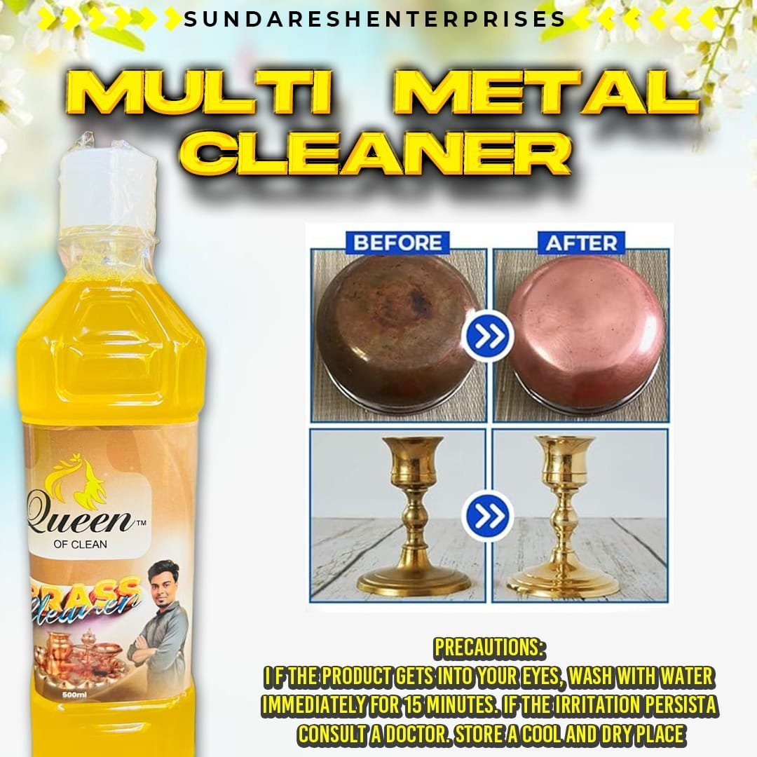 Queen of Clean – Multi Metal Cleaner (500ml) for Brass | Bronze | Copper | Panchaloha | Stainless Steel Removes Tarnish & Restores Shine